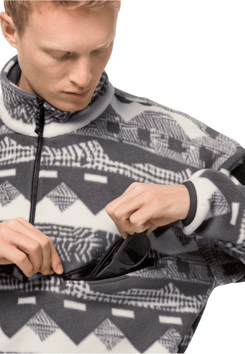 The 365 REBEL PRINTED FLEECE is part of our 365 Collection, a signature range of products created for an active lifestyle between the city and the outdoors. If you’re looking for a youthful, confident style, a stand-out design and full-spec JACK WOLFSKIN technology, these products were made for you.
