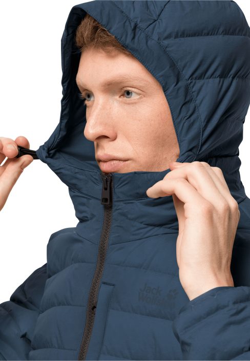 The GLOWING MOUNTAIN down jacket is light, stretchy and windproof. The innovative TEXASHIELD fabric is also water repellent, so you won’t have to worry about getting caught in a shower. The warm, RDS certified down fill has a high lofting capability yet the jacket still remains flexible enough to stretch as you move. The adjustable hood and high collar provide additional warmth in the head and neck area.