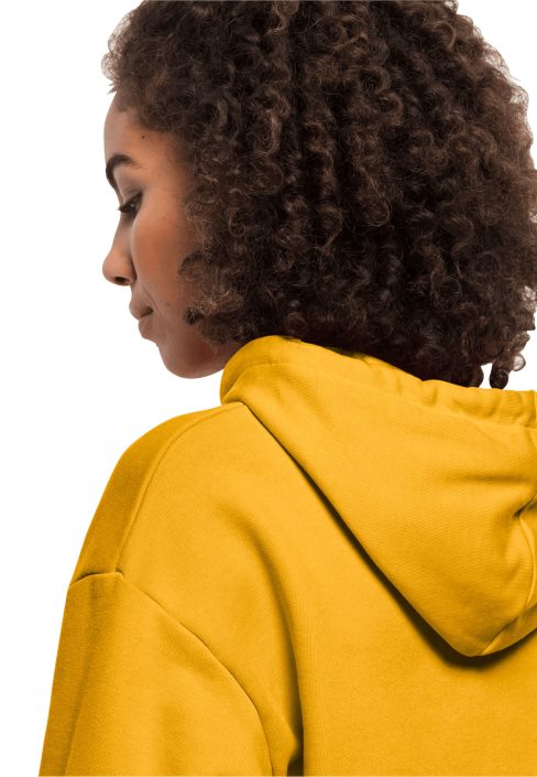 The hoody has a classic design with a front pocket and is made of pure organic cotton. The soft terry reverse side makes it especially cosy.