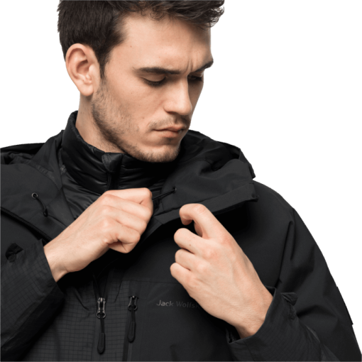 The shell jacket is windproof and waterproof. The shoulders consist of recycled TEXAPORE ECOSPHERE STRETCH. The rest of the shell is tailored from TEXAPORE INFINITY BIG GRID 3D. This fabric has a stylish, contemporary look that really catches the eye.