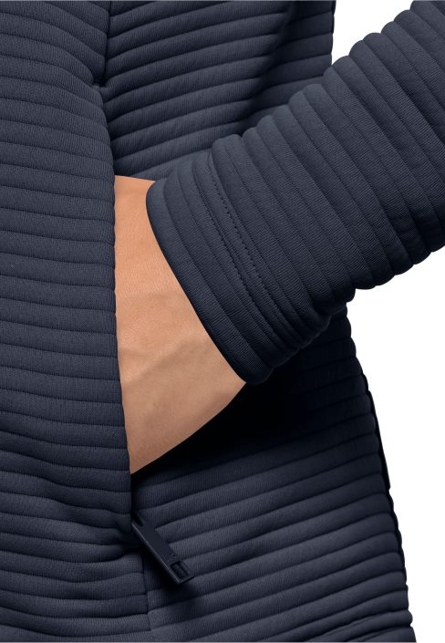 Sunset cocktails at the beach bar? Once the sun has dropped below the horizon, there’s a definite chill in the air – but it’s too early to return to the apartment. Fortunately, you have your MODESTO JACKET with you. This stretch fleece jacket has a stylish ribbed exterior and is incredibly comfortable to wear.