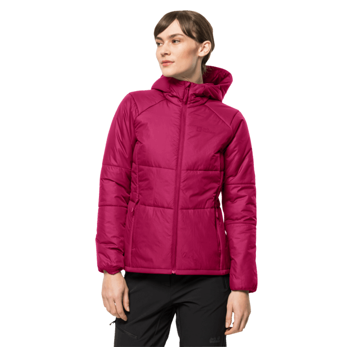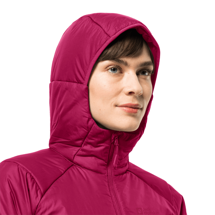 The jacket features a fixed hood and a high collar for additional warmth in the head and neck area. The two hand pockets provide space for your hiking essentials.