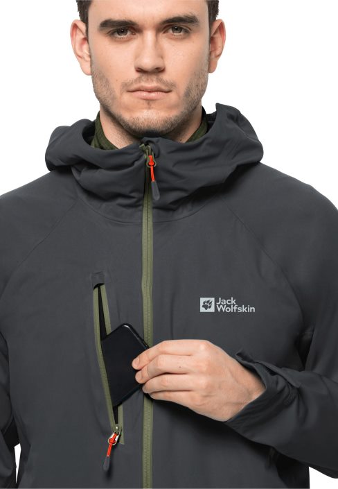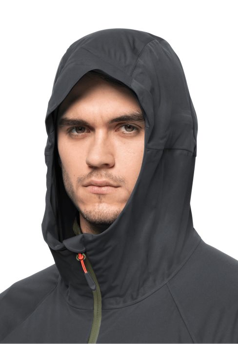 Don’t leave home without your KOBLAT softshell jacket! It packs down small, so you can stash it in your rucksack in case the weather takes a turn for the worse. Thanks to the TEXAPORE PRO SOFTSHELL fabric, this lightweight jacket is waterproof and windproof like a hardshell and supple like a softshell. The special sleeve design provides optimal freedom of movement. The hood and the hem are adjustable. Anything you might need to grab quickly can be stowed in the three pockets.