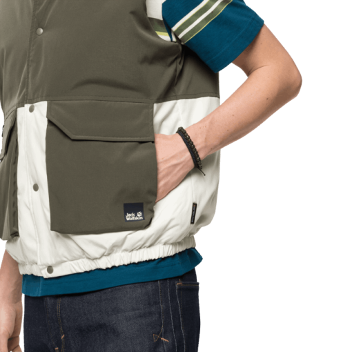 This vest has a modern colour block design, a warm insulation material made of recycled synthetic fibres, and a windproof outer fabric. The jacket has two large hand pockets for your important bits and pieces.